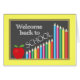 Cette carte de voeux Welcome Back To School présente un thème de tableau noir accentué de crayons colorés et d'une pomme rouge. L'intérieur contient du texte personnalisable pour vous permettre d'ajouter un message personnel.