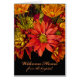 Bienvenue Accueil de l'hôpital, Design de fleurs d'automne. Carte de voeux papier avec un arrangement de fleurs couleur automne créé avec la peinture numérique. Les couleurs de l'automne sont le jaune, le rouge, l'orange et le vert. Copyright © Shoaff Ballanger Studios.