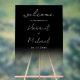 Signe d'accueil minimaliste moderne mariage avec typographie de script simple et dégradé transparent.