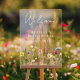 Bienvenue dans votre baby shower de printemps ou d'été avec ce baby shower d'accueil Elégant Fleur sauvage Meadow en acrylique. Le panneau en acrylique transparent présente le nom de la future mère et la date avec une bordure de fleurs sauvages d'aquarelle et de feuillage bordant le fond du dessin dans les tons rose, jaune, violet, bleu et vert. Ce panneau d'accueil fleur sauvage baby shower est parfait pour s'afficher à votre baby shower de printemps ou d'été.