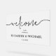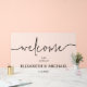 Un panneau de bienvenue ACRYLIC présente vos détails mariages en lettres noires chic. Changez pour n'importe quelle taille.
