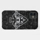 Custom iPhone 5 case featuring a vintage ace of spades illustration with baroque ornaments and floral embellishments on black and white damask. You can personalize this stylish case with your name, initials, or custom text.