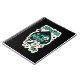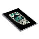 An ace built for grinders with attitude: a spade silhouette morphs into a drippy skull, halftone tongue and jagged “teeth,” framed by starbursts, a warning triangle, and a crying eye. The duotone teal-on-black palette and katakana headline hit like a sticker tag—loud from across the felt, layered with details up close. It’s equal parts luck and menace, perfect for tournament killers, cash-game regulars, and card lovers who play with edge.