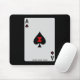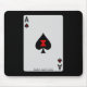 The red hour glass mark of the black widow is stamped on the spade of this ace card design.