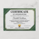 Show genuine appreciation with this professional green and gold Certificate of Appreciation.