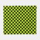 A vibrant checkerboard pattern with alternating neon yellow and black squares creates a striking geometric design, conveying a bold and energetic tone.
