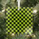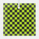 A vibrant checkerboard pattern with alternating neon yellow and black squares creates a striking geometric design, conveying a bold and energetic tone.