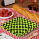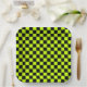 Acid green black chequerboard pattern paper plate