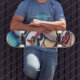 Skate board with print of albert riddles painting acid jazz on the bottom