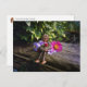 Fille elfe d'Acorn sur bouleau avec des fleurs - drôle printemps ou été carte postale