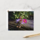 Acorn elf girl on birch with flowers - funny spring or summer postcrossing postcard