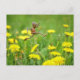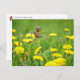 Acorn elf jumping on dandelions on the meadow - funny summer postcrossing postcard