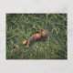 Acorn elf resting on hay - funny postcrossing summer postcard