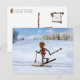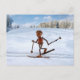 Acorn elf skiing on the snow winter postcard - funny postcrossing postcard