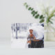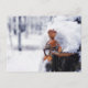 Acorn elf drinking coffee in snowy forest - funny winter postcrossing postcard