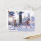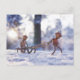 Acorn elves ride on a sleigh winter postcard