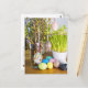 Acorn elves playing with Easter eggs - funny Easter postcard with decorated eggs