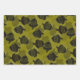 Woodcut design of oak tree acorns on wrapping paper in your choice of fall colours. Shown here in green, orange and autumn yellow.