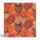 Fall colour pattern in browns and oranges, maple leaves and acorns.