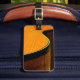 On the front, an abstract photograph of the colours and curves of a classical guitar, and on the reverse, a bar of sheet music into which you simply type your information to make it yours. Just type into the boxes under "personalize it". Great for your guitar case or any travelling musician or music lover.