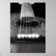A very short depth-of-field image of an acoustic guitar from the bridge looking up the neck. 645 film scan - slight film grain visible throughout.