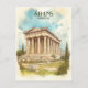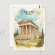 This postcard offers a lovely whimsical illustration of Acropolis Athens, Greece. It is a great postcard for travelers to Athens, Greece.