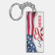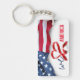 Show your patriotic spirit with this stylish keychain featuring a vibrant design of the American flag. The keychain showcases a bold "We Love America" message, complemented by the iconic red, white, and blue colours.