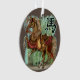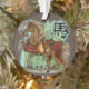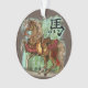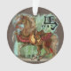 Fantastical Year of the Horse Chinese Zodiac ornament! Digital art painting of a horse decked out in all the wonderful oriental looking tack with tassels on bridle and saddle and bamboo in the background.