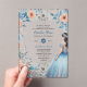 Celebrate her unforgettable day with these stunning acrylic Quinceañera invitations, designed for an elegant sweet 15 celebration. Featuring a beautiful young girl in a flowing blue dress surrounded by soft floral accents, these invitations perfectly match a dusty blue or navy blue quinceañera theme.