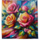 A digital acrylic painting of pink and yellow roses.