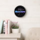 The size of the clock is dramatic and the abstract alcohol ink design is soothing and intricate at the same time. I chose the black frame that adds pop to the blue and gold design. The gold printing would be better in a slightly darker or larger font. I love it and I’m looking for just the right place in ny new apartment. I would recommend this clock for a personal gift or a present. I feel that the quality is excellent for the money! I’m a bit of a clock nut so I’m pretty particular about my purchases. The clock is larger in diameter than many if the clocks I have, so it stands out very well. I think a slightly darker printing color and a moderately larger size would best suit a professional decor or add more impact in a work place item.