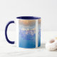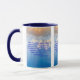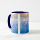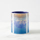 This two-tone mug has a hatton black print font with blue letters featuring the "Acts 10:7 KJV" bible scripture verse over a background picture showcasing a cloudy blue sky with the sun shining through the clouds creating a dual coloured look and sunrays. This verse is referencing the Book Of Acts 10th chapter showing the 7th verse in this bible scripture quote theme from the King James bible. The rim & handle are glazed in matching colours available in 11-ounce or 15-ounce sizes microwave and dishwasher safe ceramic construction.