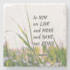 Inspirational quote scripture stone coaster depicts a nature photograph of a meadow with green blades of grass and wildflowers. It features an encouraging Bible Verse, Acts 17:28, "In Him we live and move and have our being."