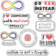An assortment of autism stickers for someone actually autistic. The rainbow coloured infinity symbol, go red instead, i heart to stim, and other positive messages in sticker form.