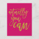 Actually You Can Motivational Quote Hot Pink/gold Postcard