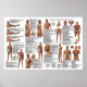 Affiche de localisation des points d'acupuncture montrant les méridiens et les emplacements des points pour les 12 principaux méridiens, CV et GV. Description de l'emplacement anatomique indiqué pour chaque méridien.