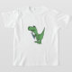 Hilarious cartoon green t-rex dinosaur holding a toothbrush t-shirt design. He's cute and fun and full of personality. You can also add custom text when ordering. Great gift idea.
