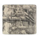 This design features a woodcut print by the 16th-century Dutch artist Lucas van Leyden (1494–1533), who was also known as Lucas Hugensz or Lucas Jacobsz. It shows Eve, the first woman of Biblical creation, offering an apple to Adam, the first man. There is a serpent (or snake) climbing the apple tree behind them: that creature has convinced Eve to eat the forbidden fruit from the tree. The act of eating gave Adam and Eve additional knowledge, but it also gave them the ability to experience negative emotions and concepts such as shame and evil. Ultimately, God banishes the pair from the Garden of Eden.