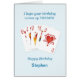 A birthday card for someone who loves to play cards. A royal flush of hearts and the words 'I hope your birthday comes up trumps.' Add a name to personalize this fun card.