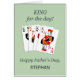 King for the day Father's Day card. Let someone know he can be the king for father's day. Four kings, one from each suit of the deck for a great poker hand! Just add a name to personalize this great card.