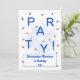 Add a name to customize this unique party invitation. A fun party invitation that can be used for a birthday or any other event. A blue theme that can be used for a boy's party.