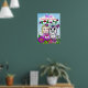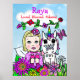 A sweet whimsical folk art Caucasian blonde haired fairy and colourful rainbow unicorn poster with fairies and flowers that says, Loved, blessed and adored. Just add your daughter's name in the customize area.