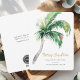 At the forefront of the card design is a beautifully illustrated palm tree, meticulously crafted and adorned with holiday ornaments that shows against a stunning greenery watercolor palm tree. This unconventional holiday symbol bridges the classic festive spirit with a tropical, breezy aesthetic, perfect for those looking for a departure from the standard snow-filled holiday scenes.