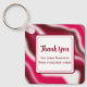 Add your business logo and business name to this festive red and pink and white striped keychain. "Thank you" written in modern typography is editable. The candy cane groovy textured stripes are my original design. I took the vibrant colours from an original photograph of a peony flower. The Christmas holiday candy pattern and sparkle surround the simple text on white background. Personalize this keychain to give as a promotional gift to your customers this Christmas holiday season.