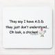 They say I have ADD, they just don't understand... Oh look, a chicken! - Attention Deficit Disorder Humour Saying.