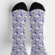 Add Initial, Blue & Mauve Flowers on Pale Grey Socks