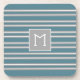 Add Initial Turquoise and Grey Stripe Pattern Coaster