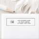 This return address label has a white background and black rectangle border. Add you logo, your business name and your return address.
