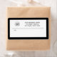 This return address label has a white rectangle centre and an editable border colour (click customize and change the background colour to change the border colour from black to that of your choosing). Add you logo, your business name and your return address.
