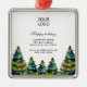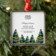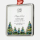 Add Logo Custom Text Christmas Pine Tree Promotion Metal Ornament. Watercolor colourful Christmas pine trees. Insert your logo into the template and customize the text, company name, address and contact information. Business promotion or giveaway for your clients and business partners.